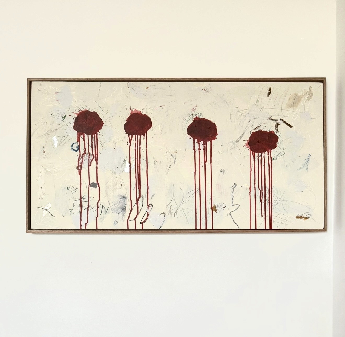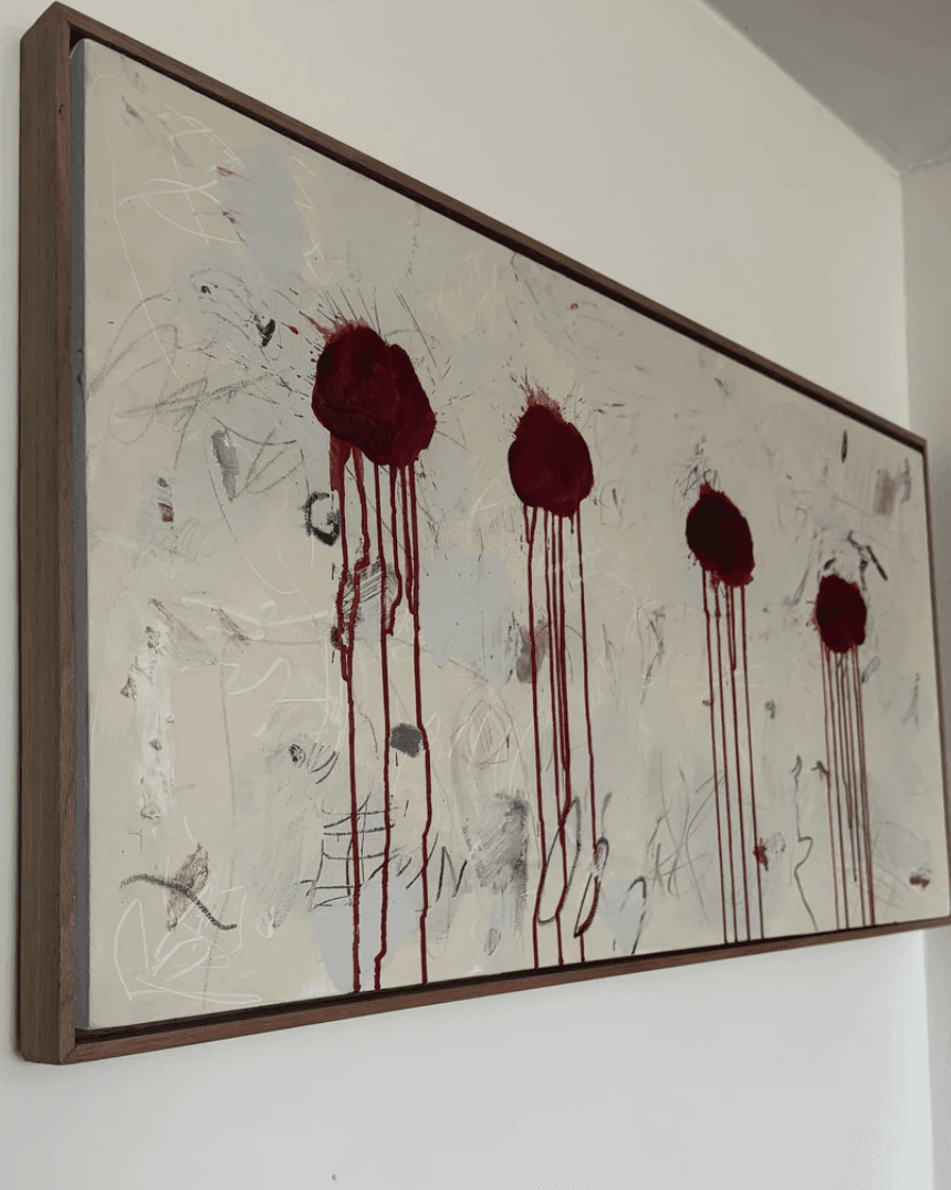 acrylic, oil, charcoal & gel acrylic.